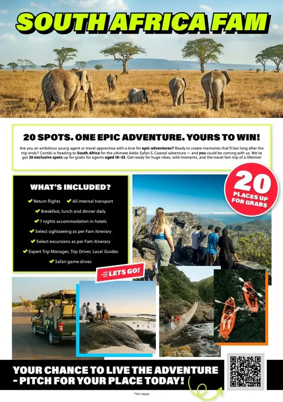 We’ve got20 exclusive spotsup for grabs for agents aged18–25. Get ready forhuge vibes, wild moments, and the travel fam trip of a lifetime: elephant encounters beautiful beaches kayaking … and a whole lot more.